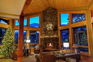 Step onto the expansive 1,000 sq. ft. Brazilian redwood porch, where you can unwind by the fireplace, soak in the hot tub, or dine under the stars—all while taking in awe-inspiring mountain views and frequent visits from local wildlife. Inside, the home exudes warmth and luxury with custom alder wood trim and cabinetry—the same durable wood used in Venice’s historic pilings and Fender guitars. With three spacious king bedrooms, multiple inviting living areas, and both indoor and outdoor fireplaces, this retreat is designed for unforgettable mountain getaways.