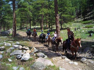 GLACIER BASIN: This 1.5-hour trail ride heads west along mildly steep terrain, up Glacier Basin. This ride does some climbing, while looking down on Glacier Creek and a small waterfall. The ride offers spectacular views of the Front Range, including Longs Peak, at the top. This trail is appropriate for riders of all ages.