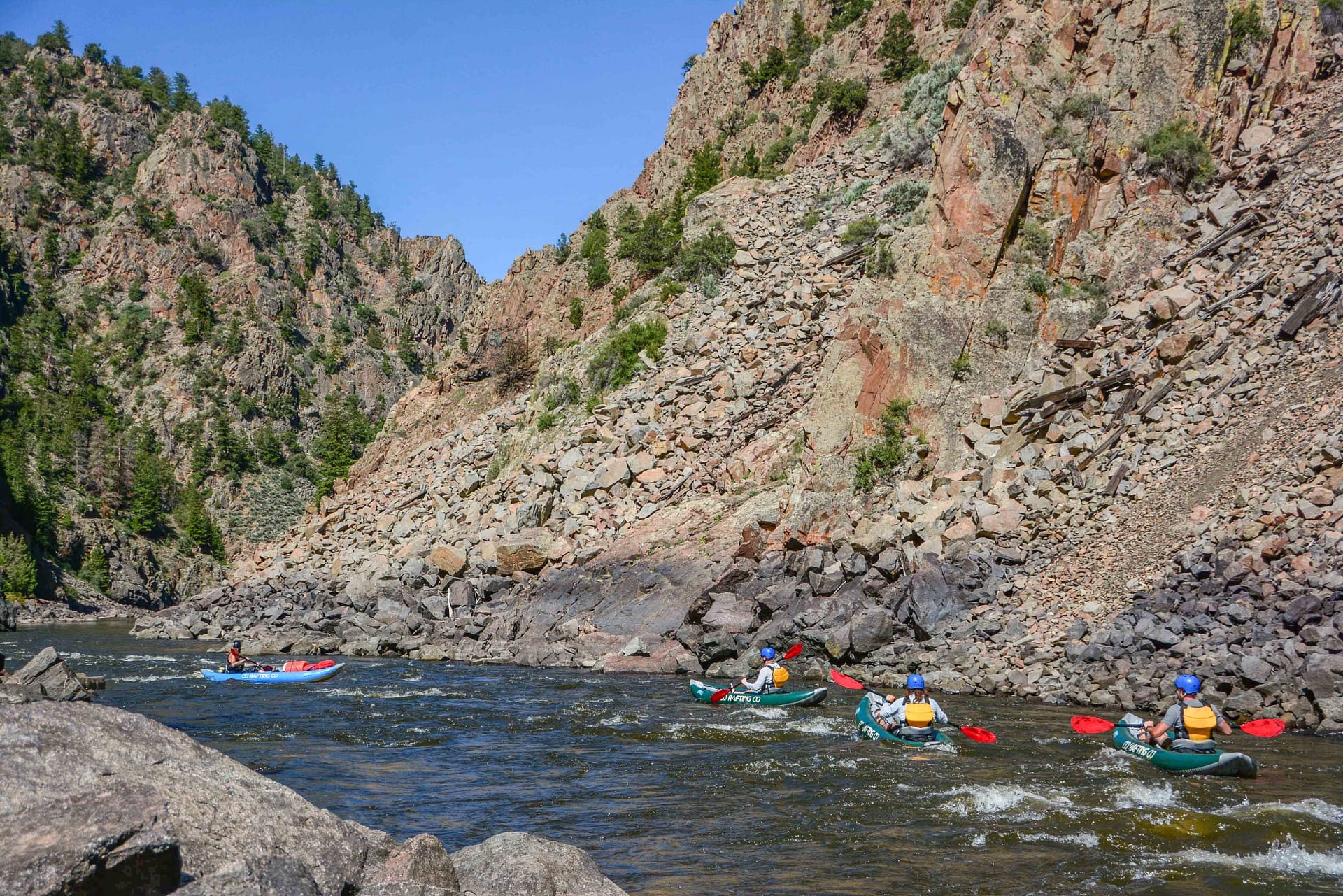 This section of the Upper Colorado is perfect for duckies, with plenty of calm water to cruise and playful Class I–II rapids that add just the right amount of splash and excitement. At higher flows, you may even encounter a few Class III rapids for an extra thrill.