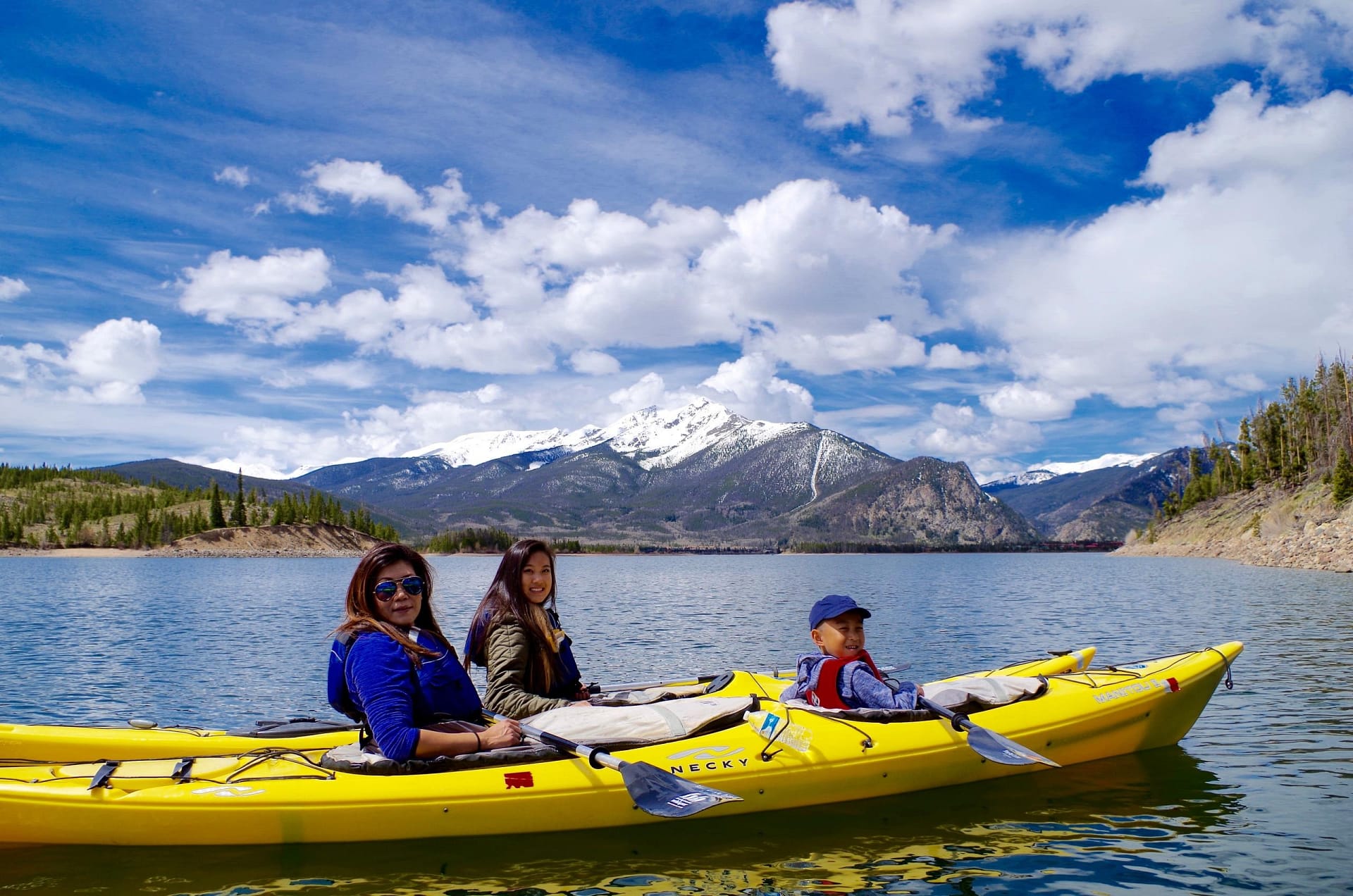 Adventure Paddle Tours in Frisco, Colorado offers award-winning guided sea kayak tours on Dillon Reservoir. Our tours are great for all ages and abilities and range from 1.5 hours to 2.5 hours. There are two Dillon Reservoir Marinas. We operate out of the Frisco Bay Marina which sits on the more protected side of the reservoir. This less exposed section of Dillon Reservoir provides guests with plenty of sheltered bays and islands when kayaking Lake Dillon.
