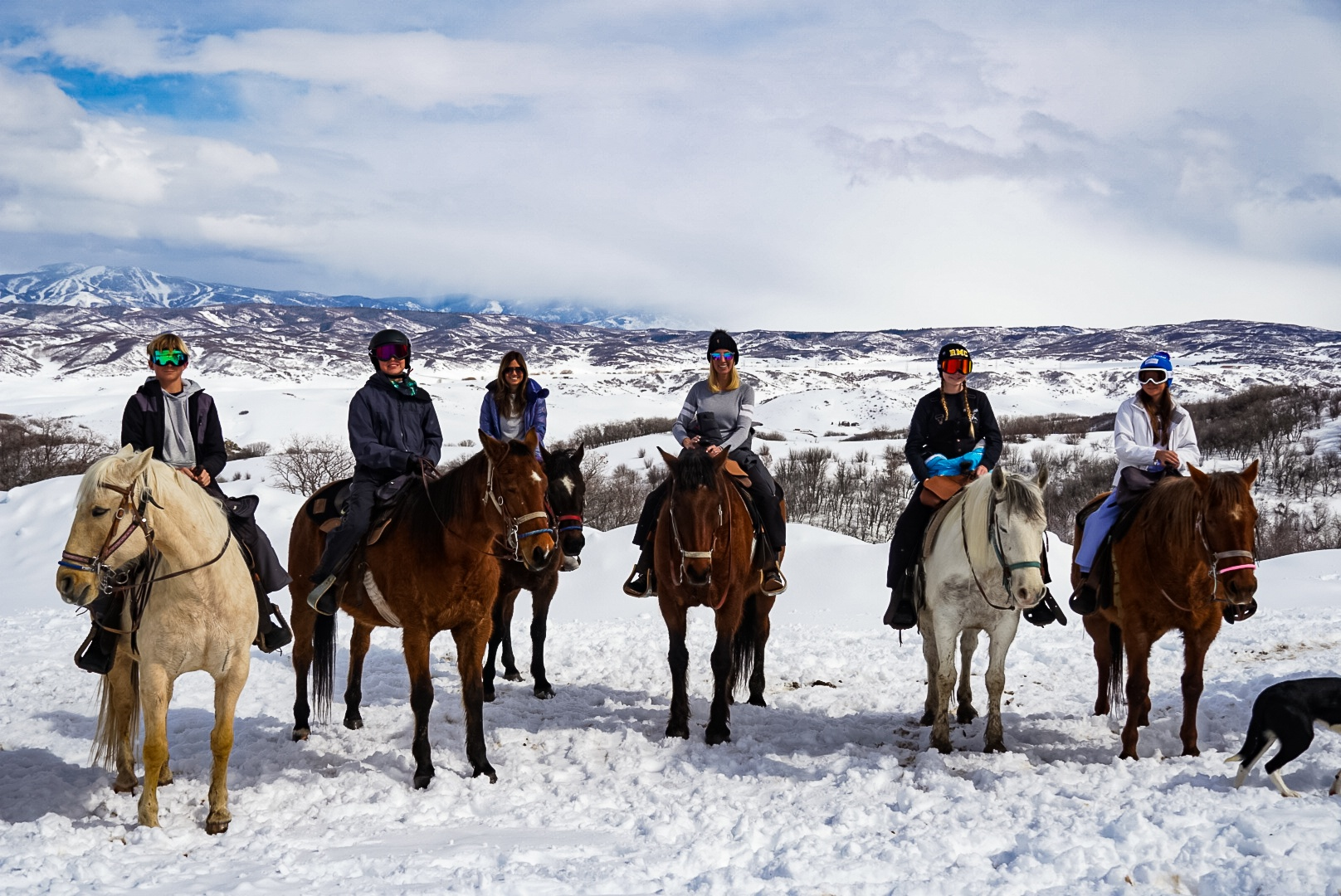 Rides are Monday – Saturday with start times at 10:30 am or 1:30pm. Helmets are required for riders 13 & under and ski helmets are fine – for everyone to keep you warmer too! Our shuttle can pick you up at your hotel or condo. Or drive yourself to our ranch which is located 17 miles west of Steamboat at 37350 RCR 179, Steamboat Springs.